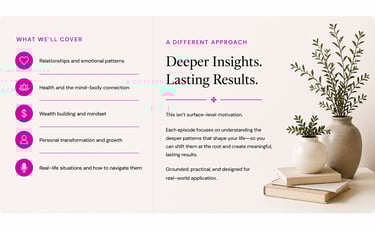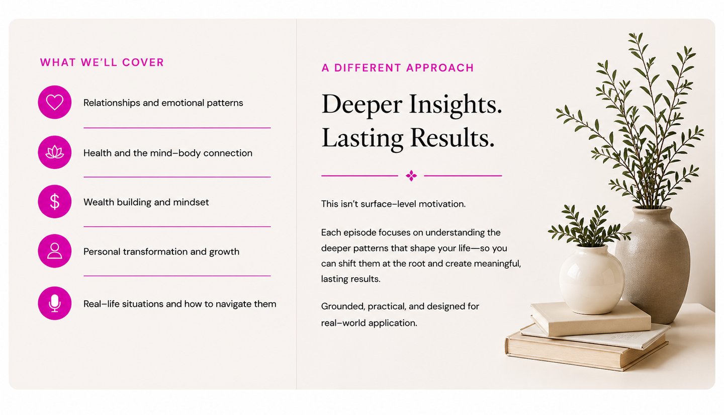 Receive practical insights on mindset, emotional wellness, and personal transformation—designed to support real, lasting change.